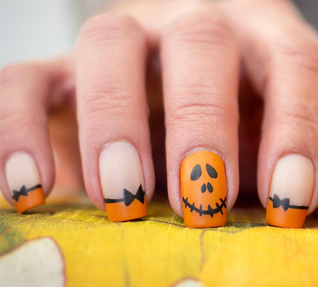 Pumpkins are a staple of Halloween. You can paint detailed jack-o'-lantern faces, cute smiling pumpkins, or even a single pumpkin accent nail.