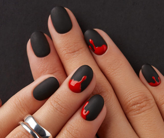 Create zombie-inspired nail art with cracked or peeling nail polish, bloody accents, and even "zombie bite" nail designs. If that is too extreme for you, you can create stylish bandage nail art which is less spooky but is chic.