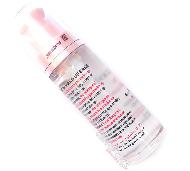 After blending foundation i have noticed that it does minimize the size of pores to almost 60% while my laugh lines doesn't break like without it. It protects foundation from creasing and becoming cakey. It also make makeup long lasting, sweat free and non drying. It perform very good with Dermacol makeup cover foundation and if you are struggling with blending of its thick texture, this make up base is very good help and when the makeup is set with loose powder, it stays longer and crease less which is quite good in summers.