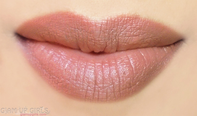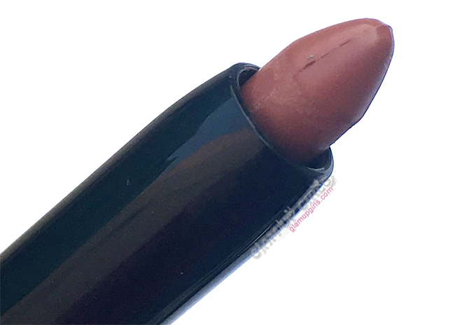 The color praline is medium brown shade with slight orange hues which is perfect nude shade for no makeup, makeup look. It is not too light to wash out dark skin tones or too dark to look bold. It is almost similar to My favorite shade Essence long lasting lipstick in barely there. The texture is non drying and glides smoothly on lips without tugging. It doesn't settle in lip lines and gives sating matte finish. If you have too dry lips, you might need lip balm as it is not moisturizing.