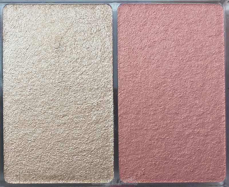 The highlighter is a beautiful warm tone champagne shade. It is really beautiful shade and the texture is wonderful to work with. The formula is not glittery and is easy to blend. The pigmentation is very good as well. The blusher is a lovely pink shade with very light gold shimmer. It is a perfect spring shade and have good pigmentation and texture.