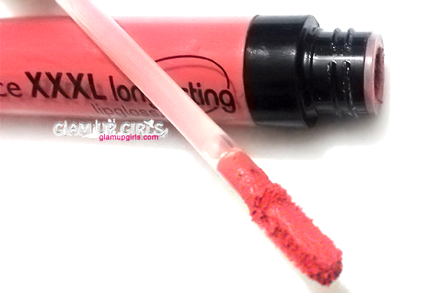 This lip gloss comes in sleek glass tube and long handle with flat applicator. Some might find using this applicator bit uneasy because it is tricky to get even application with it. The texture of product is very smooth and creamy which glides effortlessly on lips. The finish is no doubt matte. It has very noticeable smell of vanilla which can be bothering for some but after application fades away.