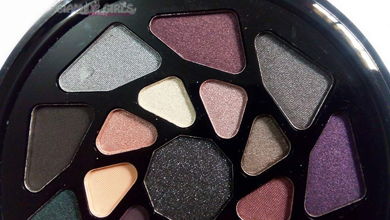 It is a round plastic palette with transparent lid which is not sturdy and the lid can fall from the frame. It has 19 eyeshadows, 9 in the outer circle and 9 in inner circle with one shadow in the center. The shades in outer circle are large comparing to the inner circle. However they are still large enough to be picked by any eye brush. This palette has considerably very nice verity of shades which falls from neutral category to bright and vibrant shades.