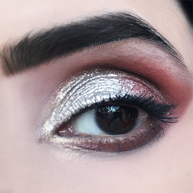 I bought two shades from this range which have numbers 16 and 19. 16 is a white gold shade with silver metallic finish. I have applied it on my eyes in above EOTD. Second shade 19 is a bronze metallic shade. Both shades are highly pigmented and have intense shimmer in them, perfect for glittery look. I love their texture as they apply very smoothly and evenly as i said earlier. With the applicator i can easily apply a layer for intense look or blend a little for little faded look with blending brush. There is no tugging and if you want second layer, let the first layer dry.