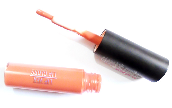 Lip vex comes in a transparent glass round tube with black metallic cap. It has brush applicator to apply the product which is easy to handle. The texture of this lip gloss is thick and little sticky, however it applies smoothly. Skinny Dip is defined as Papaya Smoothie on their website. It is a beautiful warm light peach shade. It is very moisturizing and gives the feel of fuller lips because of its shinny and creamy formula.