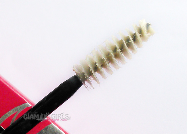 The packaging of this mascara is quite attractive. It is light weight made of plastic covered with steel layer. Both ends have transparent little tub showing the relative product color. The base side contains the white color formula which is to apply before applying black mascara and the other side contains black mascara. Both ends have large wands with brush applicator similar to spooley brush which is easy to use but can get messy if not used carefully and you can stain the eyelids with mascara.