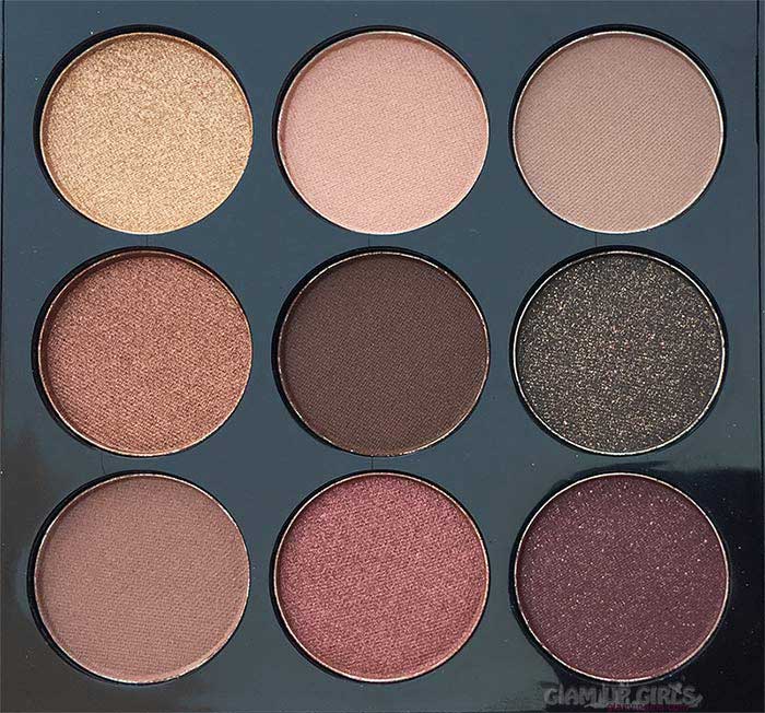 First of all i loved the packaging which is black plastic compact size with transparent lid. The packaging is quite sturdy and travel friendly. It contains nine eyeshadows and they fall into pink nudes with few dark shades for depth. The shade range is perfect to follow current trends for every day neutral look to bit glamorous look. This palette have three shimmery shade, one glitter and rest pure mattes.