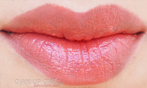 This balm stain comes in retractable plastic tube with transparent plastic cap. The tube represent the shade of product inside it and twist the stick up from the bottom in silver color. The creamy soft texture of this stick have glossy finish. The formula is not very creamy to melt in this hot summers but applies very smoothly without tugging. How ever if you have lines in your lips like mine it can stick into it so it is better to exfoliate your lips to smooth out the lines.
