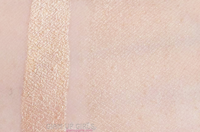 The shade Goddess Glow is warm gold which is not bright but gives a subtle glow. It is not very glittery and instead have very balanced shimmery touch to it. It is highly pigmented shade and with one swipe you get a lot of color and shine from it. You only need three dots on cheek for highlighted cheek bones. The texture of this product is easily blend able and you can either blend it with fingers, sponge or brush, depending on how intense you want it to show.
