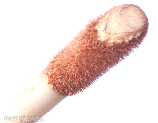 This highlighter comes in transparent plastic round bottle and have black cap attached with applicator. It is a wide doe foot brush applicator which makes it easy to apply the product efficiently. I find this packaging quite travel friendly and you can easily carry it around in bag but the black writing on bottle is easily scratch able and start fading quickly. The product have little thick creamy formula and i haven't noticed any strong smell in it.